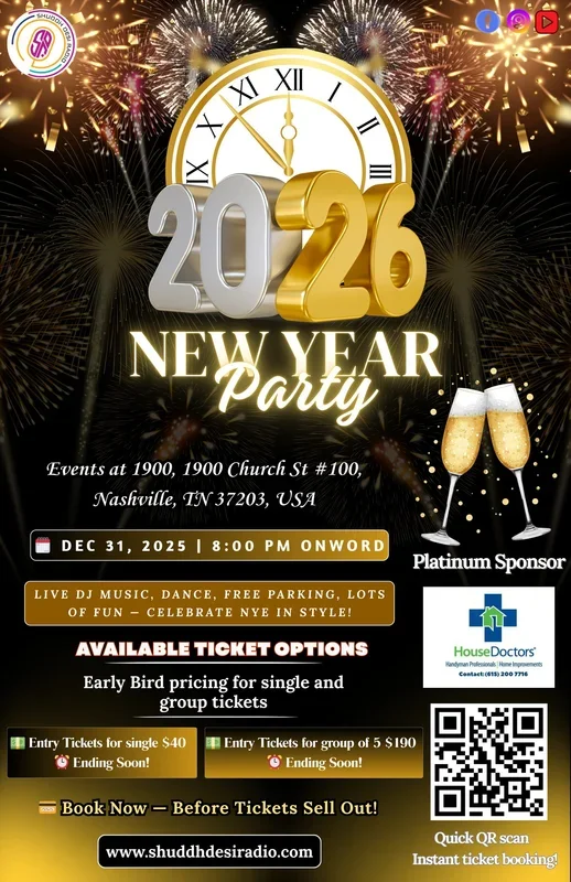 Bollywood Bang NYE Bash Wed, Dec 31 | Events at 1900 Get ready for a night of Desi Dhamaka, Patiala Pegs, and non-stop Midnight Moves! 💃✨ Join us for a glittering evening packed with Glamour, beats and pure Midnight Madness that won't let you sit. 🌟 Countdown to 2026, Bollywood style! 🎶🍾