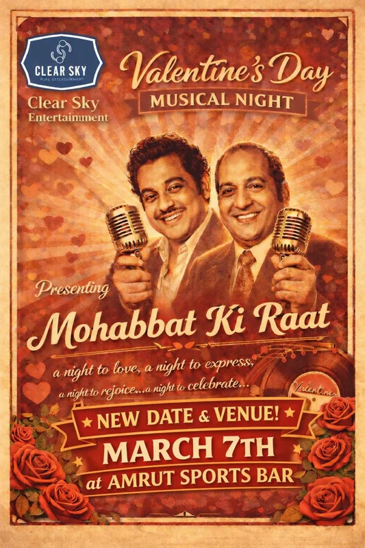 Enjoy Bollywood Retro music with Live musicians by Clear Sky Entertainment while exploring the uniquely crafted beers and delicious appetizers at Mill creek Brewery. Indulge and Experience Valentine’s Day like never before. A Night to Love, Express, Rejoice and Celebrate.